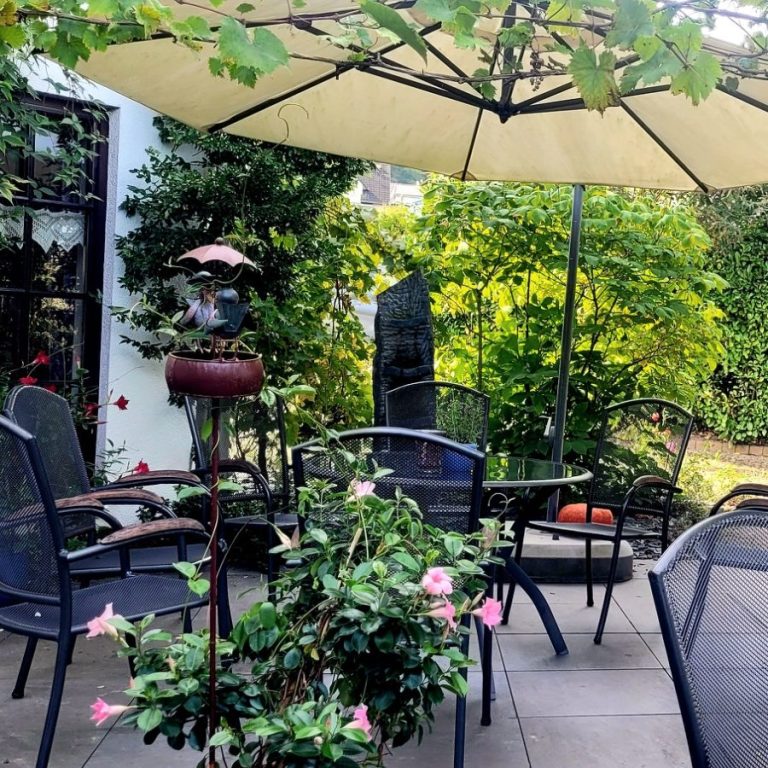 Der Frühstücksraum und unsere sonnige Außenterrasse laden zum Verweilen ein.